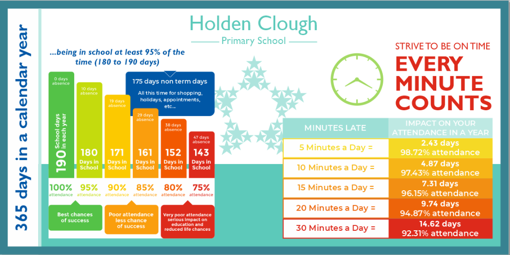 Pupil attendance at Holden Clough is taken very seriously. We believe that for a child to reach their full academic potential at school, high attendance is critical. If they are consistently late or absent from classes they will be missing important information which will have an impact on their education and learning.